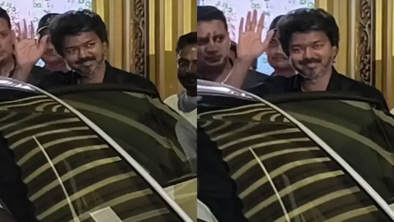 As he exited the event with his manager, Vijay waved to the paparazzi, fans, and supporters gathered outside.