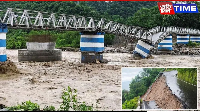 The relentless downpour wreaked havoc on critical infrastructure. An iron bridge over the Balasan River at Dudhia—the only direct route between Siliguri and Mirik, collapsed, cutting off nearby communities. Another bridge at Pulbazar was severely damaged, isolating Thanaline and parts of Bijanbari. Rohini Road, a major artery connecting Darjeeling to the plains, also gave way, while NH10, Sikkim’s lifeline, was blocked at Chitrey following landslides. The Darjeeling Himalayan Railway suspended services indefinitely.
