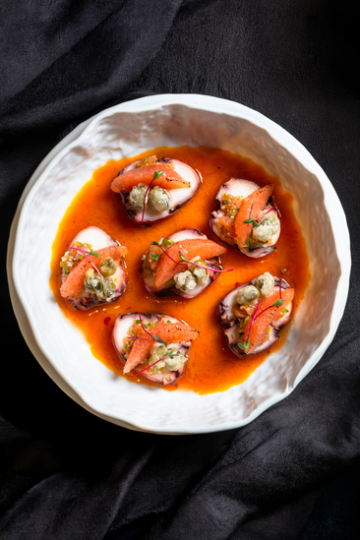 The new menu features a sophisticated balance of seafood and plant-based innovation: