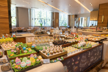 For the kids, there’s plenty to look forward to; a dedicated corner with mini pancakes, colourful cupcakes, a chocolate fountain, and an Easter egg hunt to keep them happily occupied.