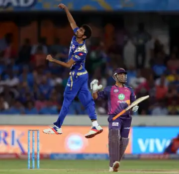 IMAGE: Jasprit Bumrah celebrates Mahendra Singh Dhoni's wicket in the 2017 IPL final. Photograph: BCCI