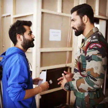 Aditya with Vicky Kaushal on the sets of his directorial debut Uri: The Surgical Strike.