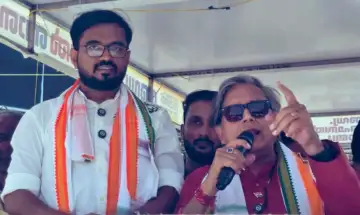 IMAGE: Congress leader Shashi Tharoor campaigns for UDF candidate Faizal Babu in Kozhikode South. Photograph: Kind courtesy Shashi Tharoor/X