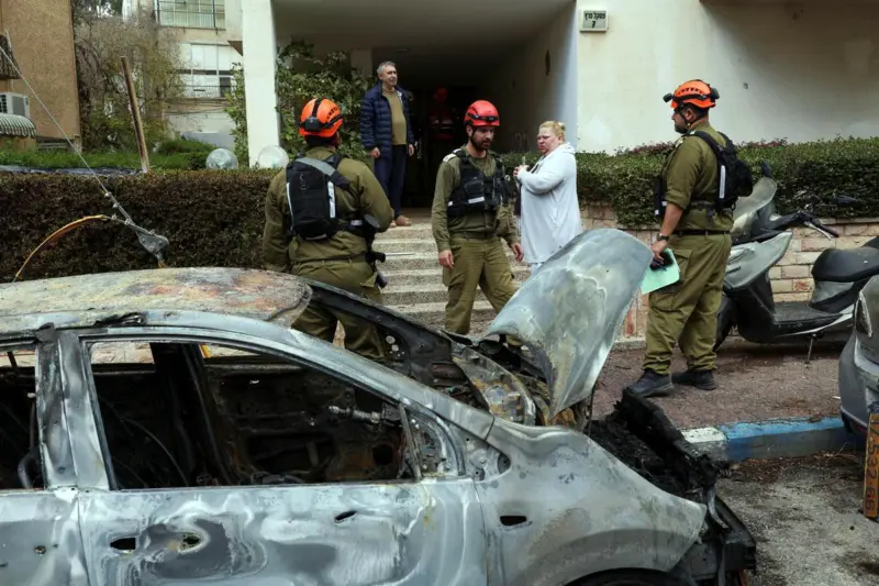 IMAGE: Emergency personnel work at the site in Petach Tikva, Israel, March 31, 2026 where damage was caused following Iranian missile strikes. Photograph: Ronen Zvulun/Reuters