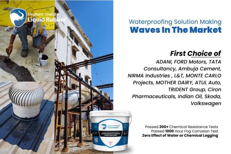 The waterproofing solutions market in India is fiercely competitive, yet Elephant Shield’s Liquid Rubber (ESLR) stands out as the preferred brand. Among our esteemed large-scale industrial clients in India who rely on Elephant Shield Liquid Rubber (ESLR) are industry giants such as ADANI, FORD Motors, TATA Consultancy, Ambuja Cement, NIRMA Industries Limited, L&T, MONTE CARLO Projects, ISRO, UNILEVER, Aditya Birla, RSLP, ITC ect. consistently place repeat orders, underscoring their loyalty to the ESLR brand. Its ease of application and cost-effectiveness make it a highly sought-after product, driving its rapid sales.