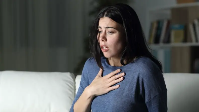 When acid repeatedly splashes up, it can inflame the food pipe and cause a burning or heavy sensation that mimics chest pain. The stomach may feel bloated or full, and that pressure can push the diaphragm upwards, making breathing feel shallow.