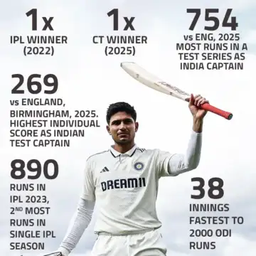 Highest individual score as Indian Test captain: During the Test series against England, Shubman Gill achieved another feat when he scored a match-winning 269 runs in the second Test in Birmingham. With this, Gill went past Virat Kohli's 254* runs to register the highest individual score in Tests by an Indian skipper.