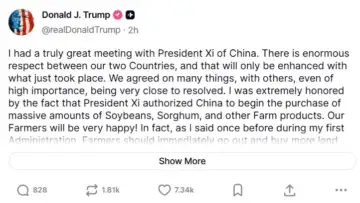 Meanwhile, President Donald Trump concluded a meeting with his Chinese counterpart, President Xi Jinping. "I had a truly great meeting with President Xi of China. There is enormous respect between our two Countries, and that will only be enhanced with what just took place," he said in a post on Truth Social.