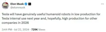 Elon Musk's post on X | @elonmusk/XTSLA stock is up 7% year-to-date and 29% over the past 12 months.