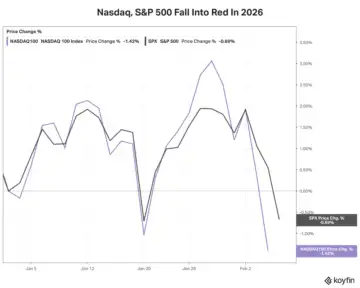 The Nasdaq 100 index has already declined 3.9% this week and is on track to record its worst performance since the first week of April last year. That is also due to a broad selloff in software stocks, as worries that AI will reduce demand for subscription software are taking hold.