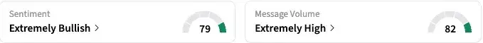 On Stocktwits, retail sentiment toward CoreWeave stock shifted to 'extremely bullish' as of late Monday, from 'bearish' a day ago. The message volume also perked up to 'extremely high' levels, with the retail chatter jumping nearly 4,000% over the 24 hours leading up to late Monday.