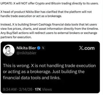 Bier later said in a statement that the company will not offer direct crypto or Bitcoin trading on its platform and will not handle trade execution or act as a broker. Instead, the company is designing the Smart Cashtags as financial data tools that will let users see live prices, charts, and asset information right in the X timeline. When users want to buy or sell something, they will be sent to outside brokerages or exchange partners to do so.