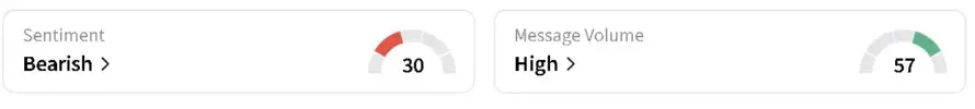 ARKF retail sentiment and message volume on March 6 as of 4:10 a.m. ET | Source: StocktwitsRetail sentiment around the ARK Next Generation Internet ETF fell to 'neutral' from 'bullish' territory over the past day. It also saw chatter trending at 'high' levels.