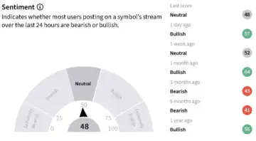 Retail sentiment on Stocktwits across ARKK, ARKF, and ARKW varied on Friday. The asset manager's flagship ARK Innovation ETF edged 0.42% higher in pre-market trade, with retail sentiment trending in 'bullish' territory over the past day and chatter at 'normal' levels.