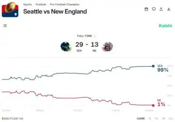 Kalshi trading volumes for the Seattle versus New England game during Super Bowl LX | KalshiMansour Plays Down Criticism