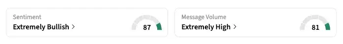 Amid the sharp share slide, retail sentiment on Stocktwits has moved up and has remained in the 'extremely bullish' zone since the middle of last week.