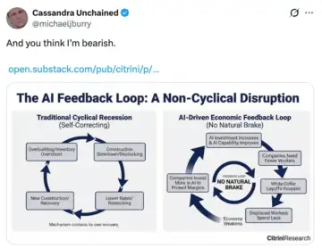 "The Big Short" investor Michael Burry, best known for spotting and betting against the subprime mortgage crisis, shared a post from Citrini Research about a thought experiment detailing how artificial intelligence agents would impact the world economy in the future.