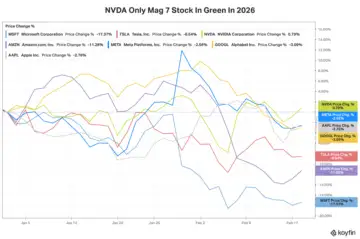 Microsoft shares are down by over 27% since their Oct. 28 peak and down 17.4% so far this year, the most among the Magnificent stocks. Only Nvidia is in the green for 2026, with a modest 0.8% gain.