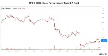 When Netflix announced its first split on Jan. 21, 2004, the stock gapped 18% higher in the very next session, then moved roughly sideways before giving back all its pre-split announcement gains. The stock ended the year down about 54%.