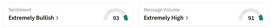 On Stocktwits, retail sentiment around the stock changed to 'extremely bullish' from 'bullish' territory the previous day. Message volume shifted to 'extremely high' from 'high' levels in 24 hours.