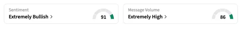 On Stocktwits, retail sentiment around SNAP shares remained in the 'extremely bullish' territory over the past 24 hours amid 'extremely high' message volumes.