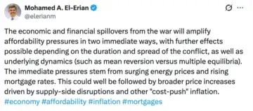 Meanwhile, Mohamed El-Erian, Chief Economic Advisor at Allianz, warned in a post on X on Friday that the longer the U.S.-Israel-Iran war stretched out, the greater the risk would be to the global economy, especially in terms of production systems and supply-chain issues.
