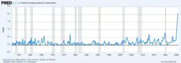 - The World Uncertainty Index has reached its highest level ever, higher than during 9/11, the Iraq War, the 2008 financial crisis, and the COVID-19 pandemic.