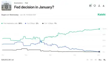 Kalshi prediction market bets on Fed rate cut in January, as on Jan. 26 | KalshiWhile total betting volumes on the two platforms stood at over $534 million at the time of writing, 99% of the votes were in favor of the Fed keeping rates unchanged.