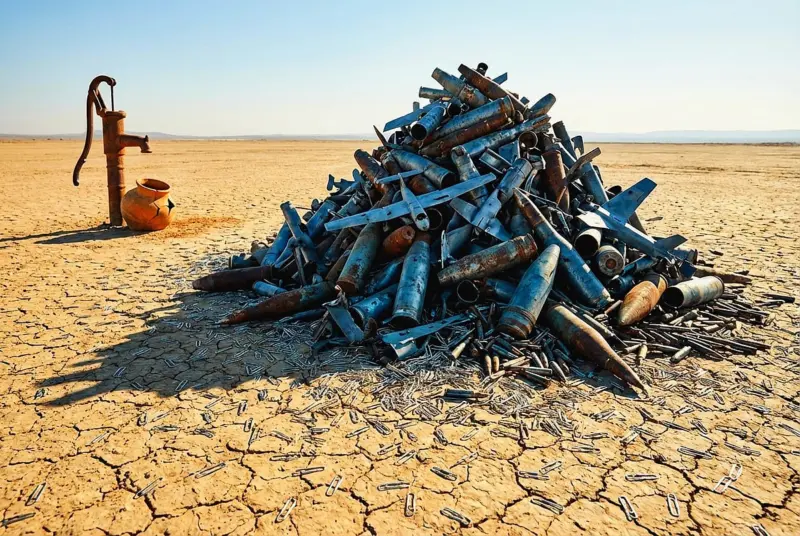 Instead, that ₹1.25 lakh crore worth of human potential was converted into kinetic energy and chemical explosions - human trauma, shattered lives, polluted atmosphere, poisoned waters, and degraded soil. This is the circular logic of an extremely dangerous component of Department I in its purest form: munitions are produced, used, and then more munitions must be produced to replace them, 'round and round', while the villagers waiting for water remain waiting.