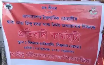 Reportedly, the protesters gathered at a prominent location of Biswanath, raised slogans holding placards and condemned what they described as a targeted violence against minority Hindu communities in Bangladesh.
