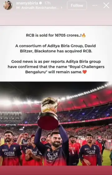 Amid speculation about a possible rebranding, Ananya Birla clarified through a social media post that the team will continue with the name Royal Challengers Bengaluru. This confirmation has reassured fans who were concerned about losing the iconic identity of the franchise.