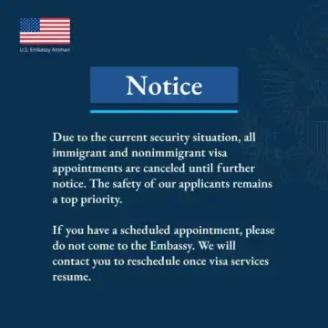 - Jordan's US Embassy cancels visa appointments