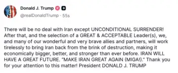 Trump calls for Iran's 'unconditional surrender'