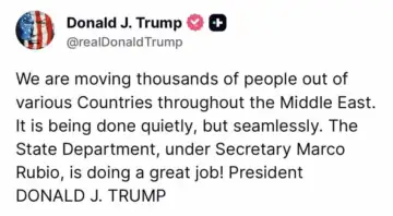 Trump says US quietly moving thousands of people out of Middle East countries.
