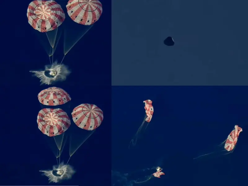 As Integrity, the Orion capsule, passed 5,000 feet, all three main chutes deployed. NASA commentators called it a 'pitch-perfect descent.' The 300-pound parachutes slowed the capsule from supersonic speed to a gentle 19 mph (31 kph) as it hit the ocean surface.