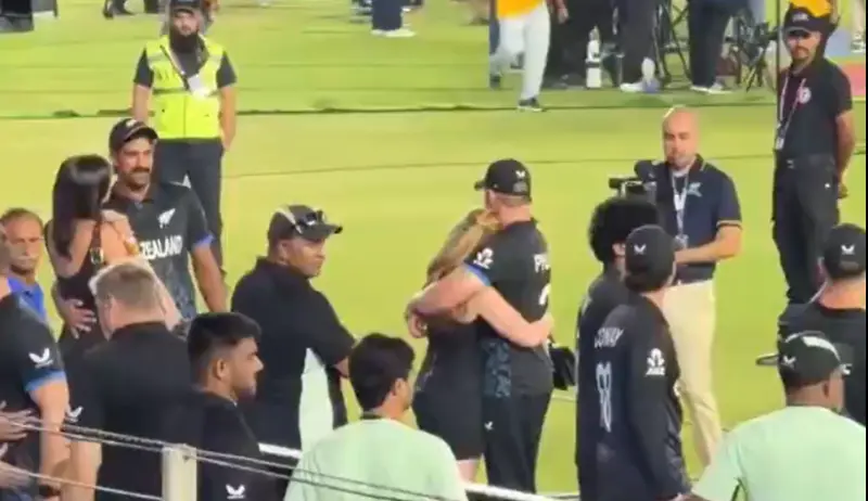 New Zealand star Glenn Phillips and his wife Kate Victoria were seen sharing some affectionate moments with one another after Team India thrashed the Kiwis in the T20 World Cup 2026 final on March 8, Sunday in Ahmedabad.