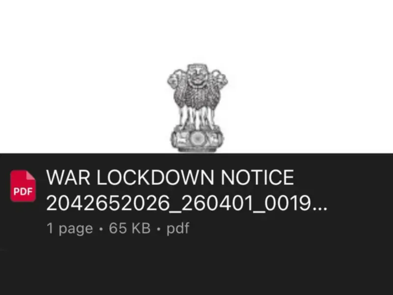 A viral war lockdown notice PDF claiming that India could soon go into lockdown due to rising tensions involving the US, Israel, and Iran has sparked widespread concern online. The message, designed like an official government notice, has been widely circulated on social media platforms and messaging apps.