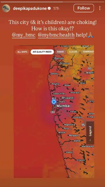 Deepika took to Instagram Story to share a hazy view of the city and tagged the civic authority and the BMC Public Health Department. In the caption, she wrote, "This city (& its children) are choking! How is this okay? @bmc @mybmchealth help".