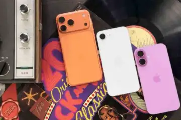 iPhone 17e (centre) flanked by iPhone 17 Pro Max (left) and iPhone 17. Picture: The Telegraph / Mathures Paul