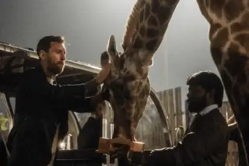 12 12 In this image received on Dec. 16, 2025, Argentine footballer Lionel Messi spends time with a giraffe during a visit at Vantara, a wildlife rescue, rehabilitation and conservation centre, in Jamnagar, Gujarat. (Vantara via PTI Photo)
