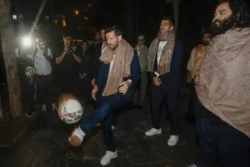 11 12 In this image received on Dec. 16, 2025, Argentine footballer Lionel Messi, Uruguayan footballer Luis Suarez with Reliance Industries Chairman Mukesh Ambani's son Anant Ambani during a visit at Vantara, a wildlife rescue, rehabilitation and conservation centre, in Jamnagar, Gujarat. (Vantara via PTI Photo)