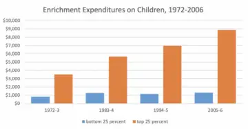 The impact, of course, varies considerably by socioeconomic status. Low-income children and their families have less capacity and opportunity to engage in out-of-school enrichment activities. And that chasm - driven largely by increased spending by high-income parents - has exploded over the last generation (see Figure 2). The absence of public schooling burdens low-income families more in the short run, and it widens the opportunity gap in the long run.