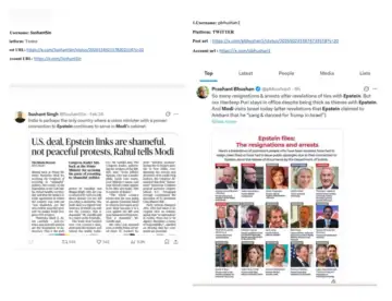 Journalist Sushant Singh, lawyer Prashant Bhushan and the handle 'Amockx2022' received notices for posts highlighting Congress leader Rahul Gandhi's statements regarding Union minister Hardeep Singh Puri. Singh's withheld post featured a news clipping and claimed the country was unique in having a minister with a "proven connection" to the late financier Jeffrey Epstein serving in the Cabinet.