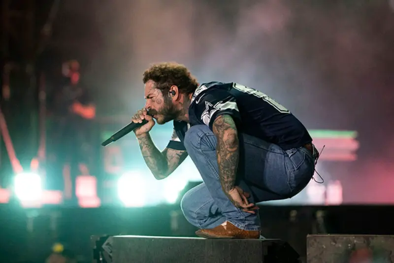 American country-rap juggernaut Post Malone headlines on Sunday. Watching the 30-year-old ping between country rock, pop-rap, and balladic R&B ought to be whiplash-inducing. But there is a strange unity to his set, a pervasive all-Americanness that marks every song - from the melodious "Circles" to the twangy, upbeat "I Had Some Help" - as distinctly his. Malone, real name Austin Richard Post, or "Posty" to his fans, is a lively and unserious showman; regardless of what you think of his digestible, mass-marketable music, there's something undeniable about his performance.