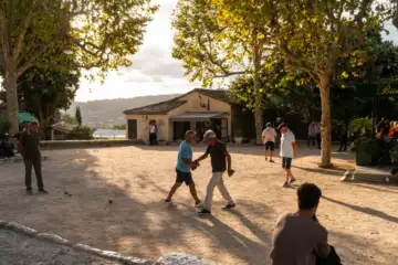 After a long day of looking at art, I sat with my guides outside a bar just next to Galerie Podgorny. As we drank our beer, the sun was setting, and we watched the locals play pétanque, their long-shadows dancing on the golden courtyard. I felt like I was in a Renoir painting; my iPhone camera just couldn't do the light justice.