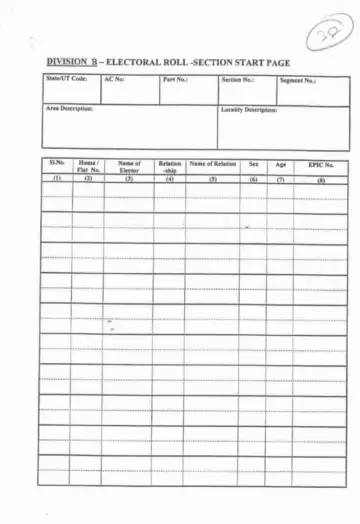 | Schedule and process | It started in August 2001 and the first 31 days were allotted to house numbering, appointment of enumerators, electoral registration officers, and district electoral officers, their training, and the consolidation of existing electoral rolls, including the supplements of 2001 revision. The preliminary list was prepared by integrating all supplementary lists. Electors of one area and one locality were brought into the same polling booth. In the next 30 days, the enumerator visited houses and verified each entry in the electoral rolls with the head of the household and noted down the corrections in the blank dotted line given below each centre in the preliminary list.