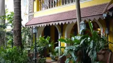 Perhaps the most charming corner is the backyard. Raw laterite stone walls, exposed pipes and blue and yellow shutters create an unmistakable Goan vibe. Adding to its uniqueness is a resident cow named Kamdhenu, a detail that has amused fans and guests alike.