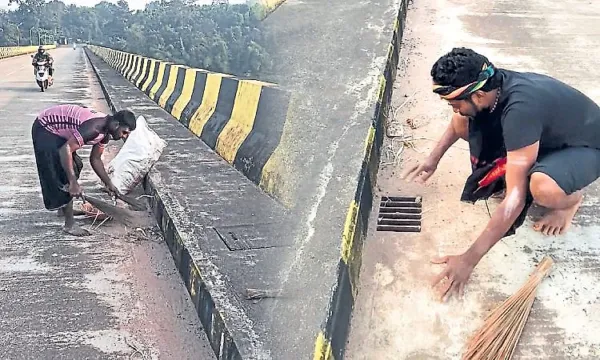 Satish Arruvara and Akshay K.V. Bareppadi, residents of Kudmaru village in Kadaba taluk, are raising awareness about the necessity of a clean environment and the role of the public by picking up litter at roadsides, bridges, and places where fairs and festivals are held.