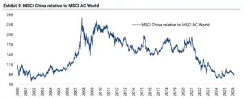 Not only that, the MSCI China Index, which significantly outperformed the MSCI World Index in the early 2000s, has since seen the outperformance deteriorate and finally transition to underperformance (below 100) in the last few years.