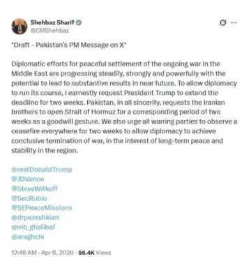 Sharif appealed to former US President Donald Trump to refrain from threats against Iran. However, social media users noted that the initial draft of his appeal appeared to have been prepared outside Pakistan, leading to speculation and ridicule online.